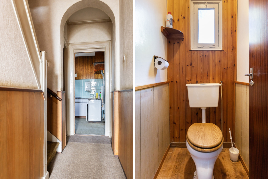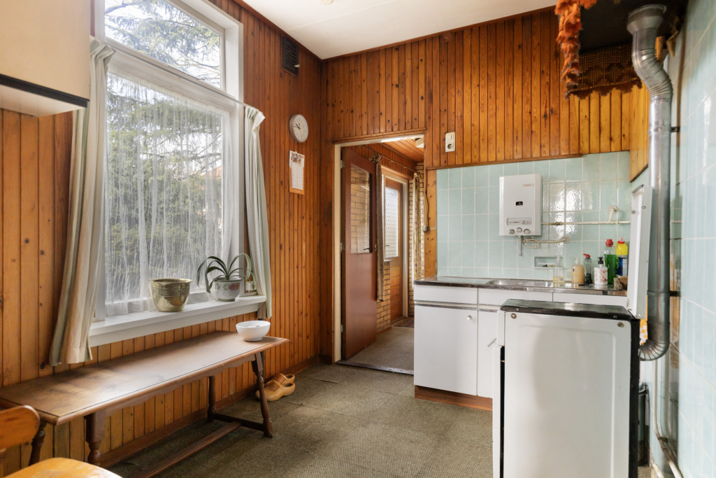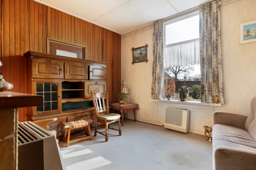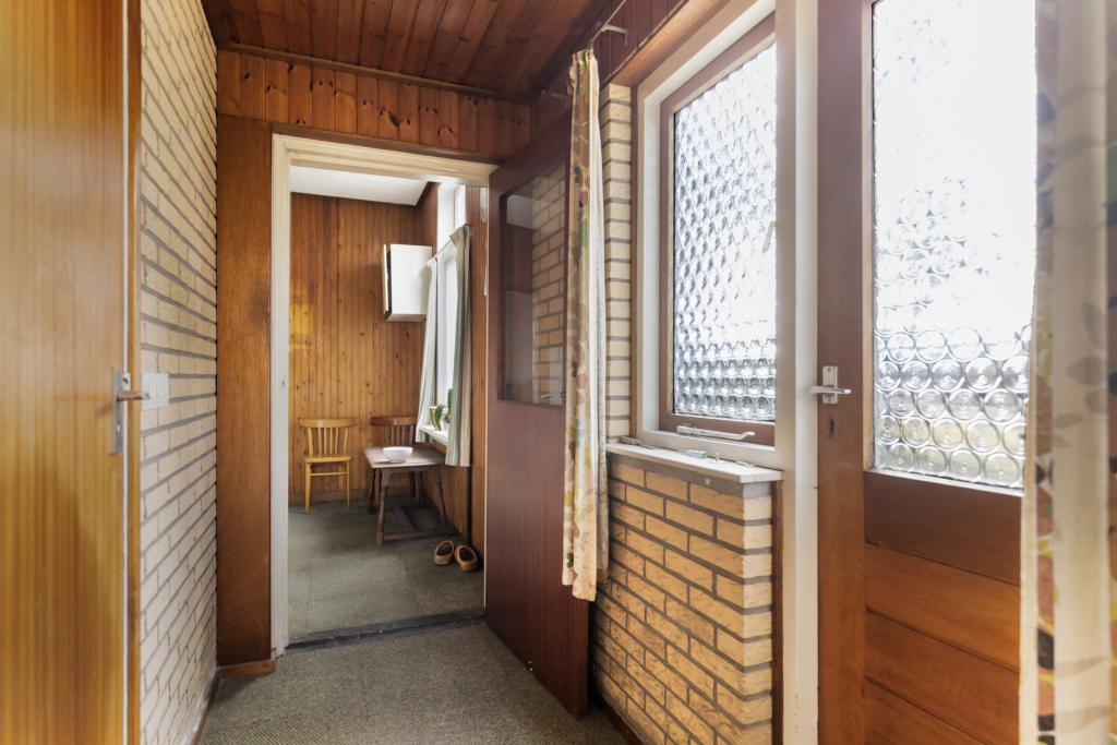Hal/entree met meterkast en toegang tot de provisiekelder, het toilet, de keuken en de voor- en achterkamer. Vanuit de voorkamer heb je vrij uitzicht op de Brinkersweg en via de achterkamer (welke