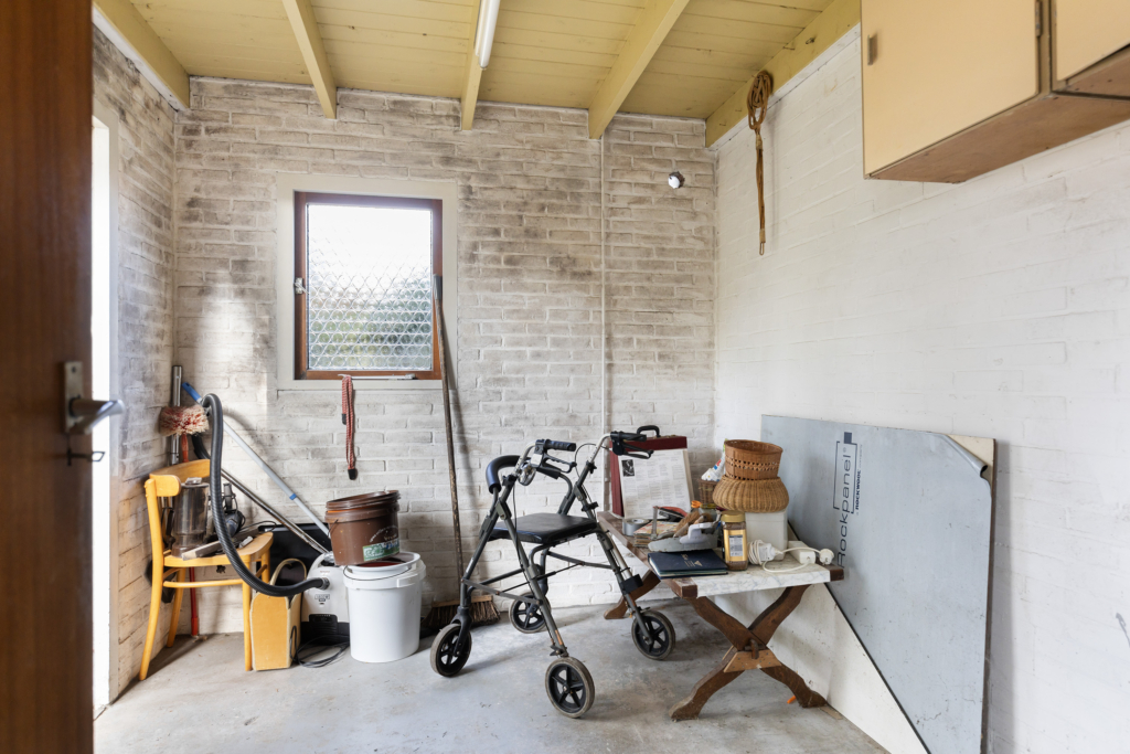 In de achtertuin is een vrijstaande garage aanwezig welke bereikbaar is via de oprit vanaf de Kroonlaan. In het aan de achtergevel aangebouwde gedeelte tref je een stenen berging aan.