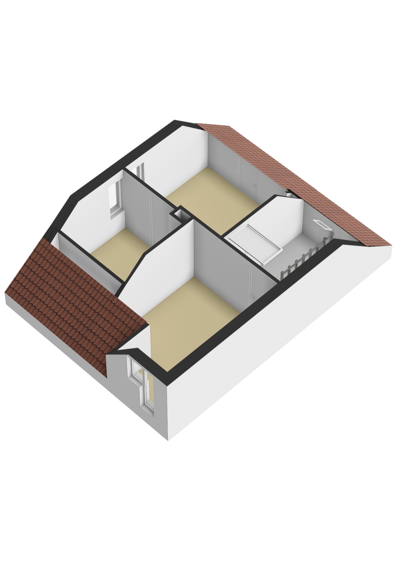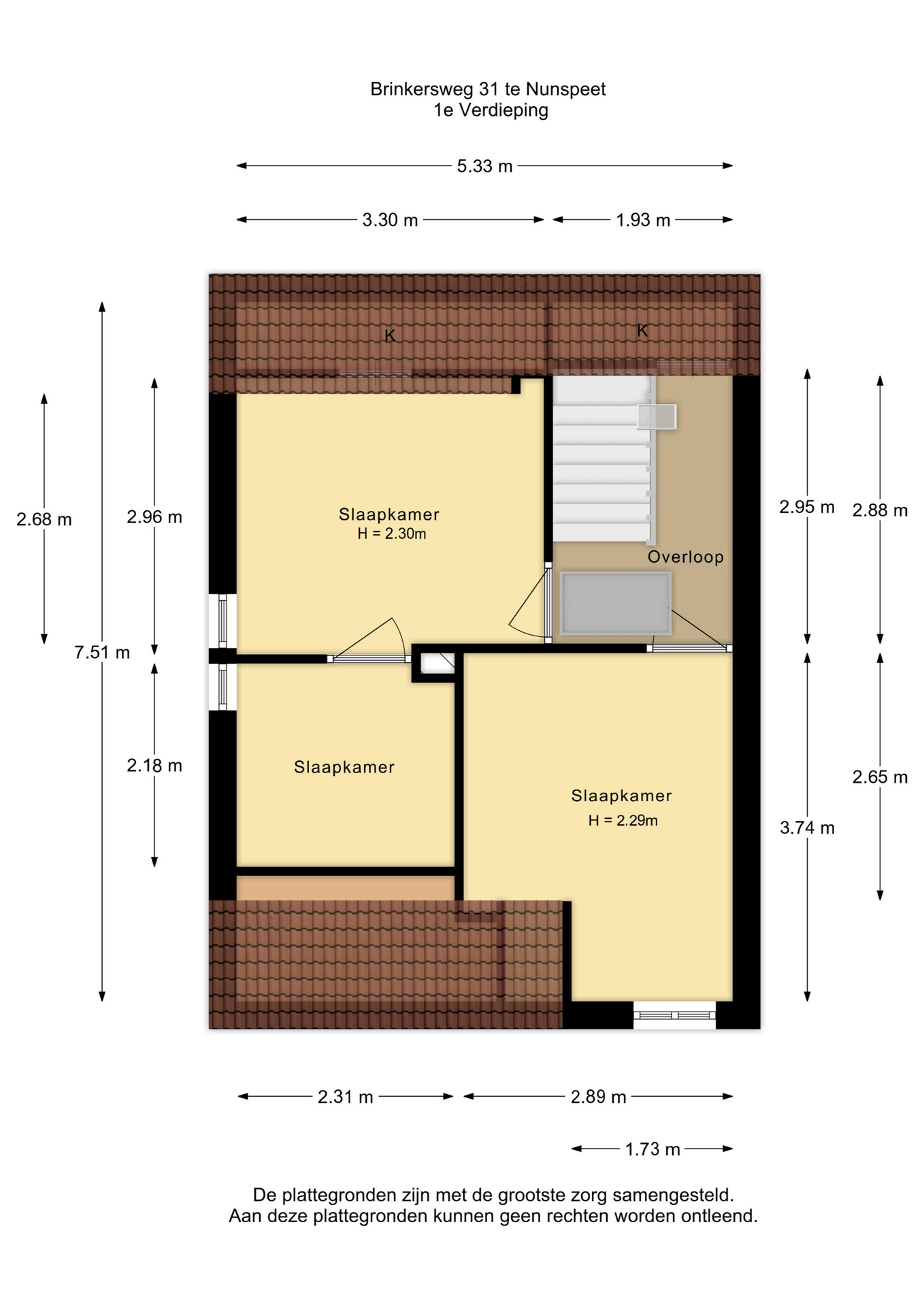 2e etage: via luik te bereiken vliering.