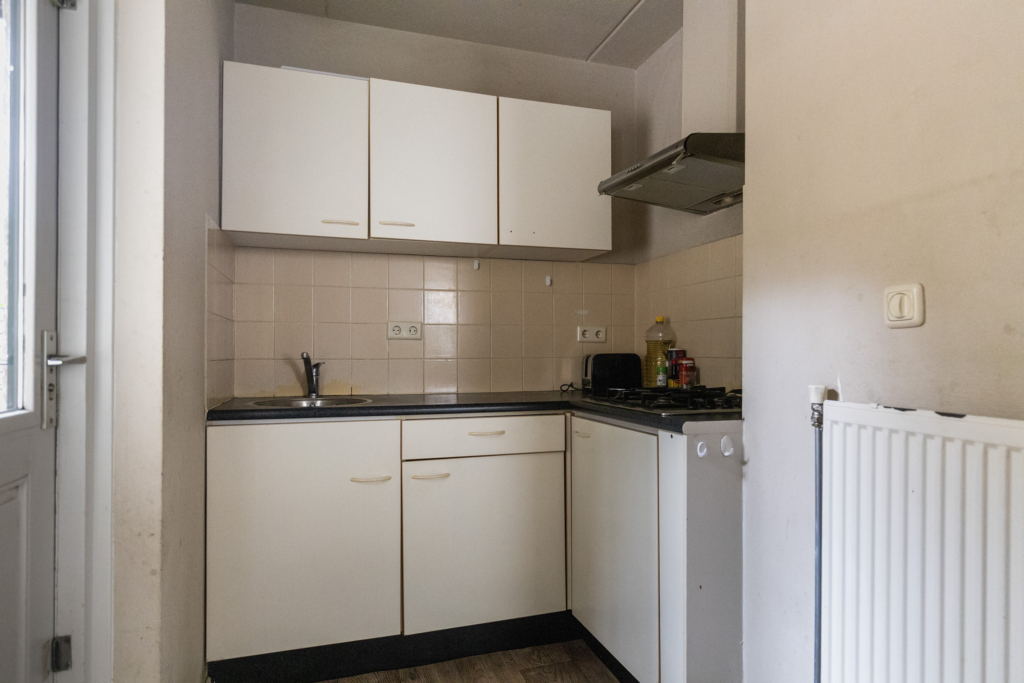 Indeling: hal/entree met toegang tot het toilet, de woonkamer en de slaap- en badkamer. Vanuit deze gezellige woonkamer heeft u vrij uitzicht en beschikt u over dubbele terrasdeuren. De open keuken is van een eenvoudige hoekopstelling voorzien.