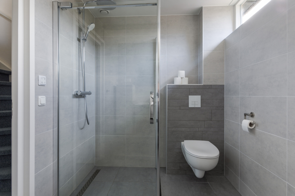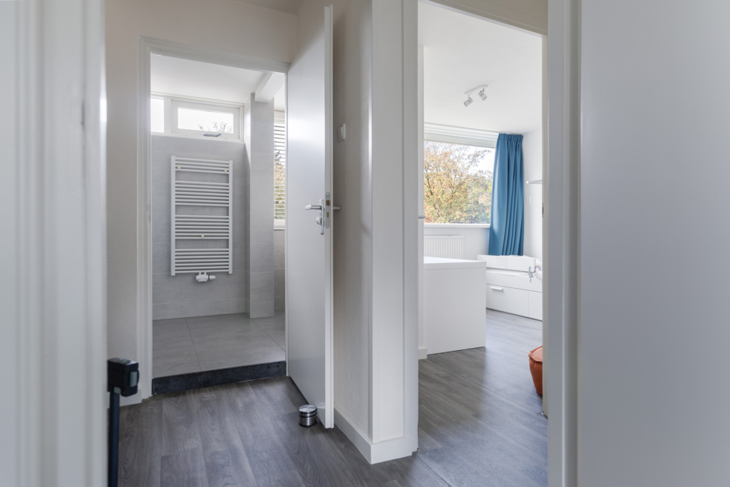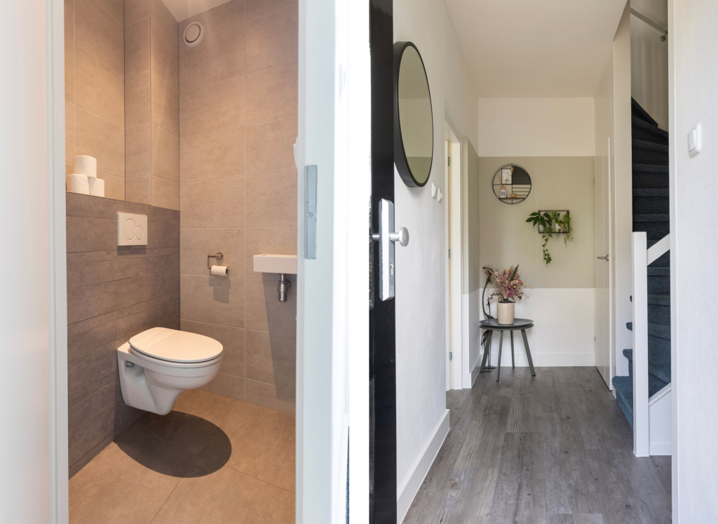 Behalve het toilet is de begane grondvloer van vloerverwarming voorzien.