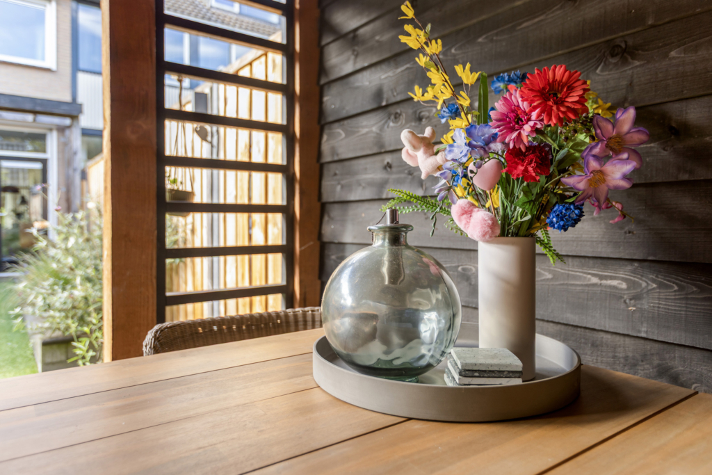 Wat een leefruimte en comfort biedt deze FRAAI GERENOVEERDE EN UITGEBOUWDE MIDDENWONING met bijkeuken, berging en veranda…