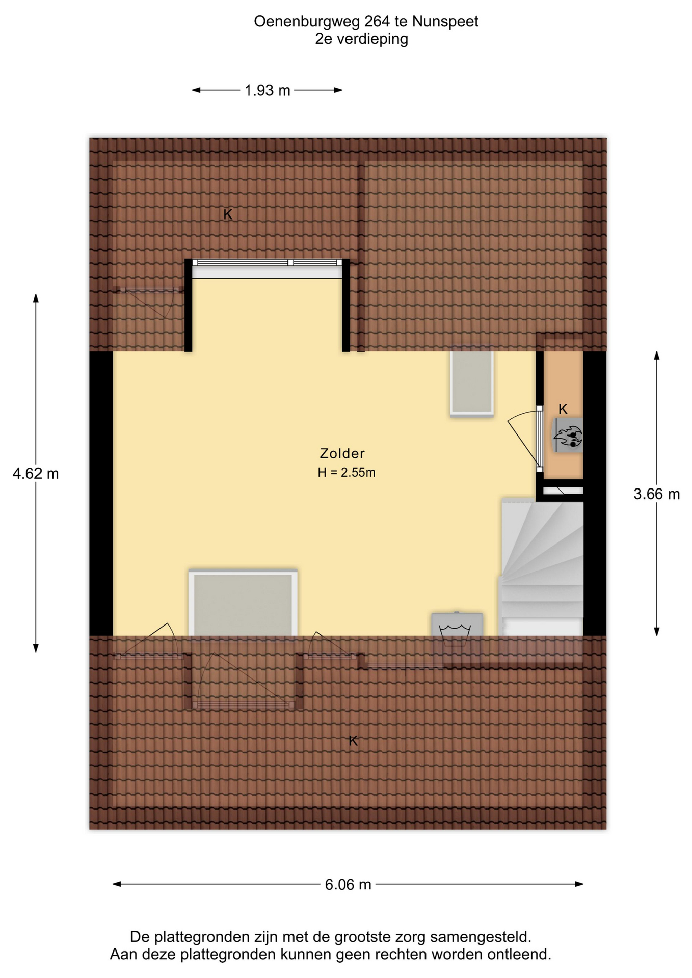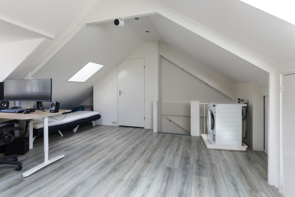 De tweede etage welke via een vaste trap bereikbaar is zal je aangenaam verrassen. Door de aanwezigheid van een dakkapel en een groot tuimelraam beschik je hier over een ruime zolderetage waar 1 of meer (slaap)kamers te realiseren zijn.