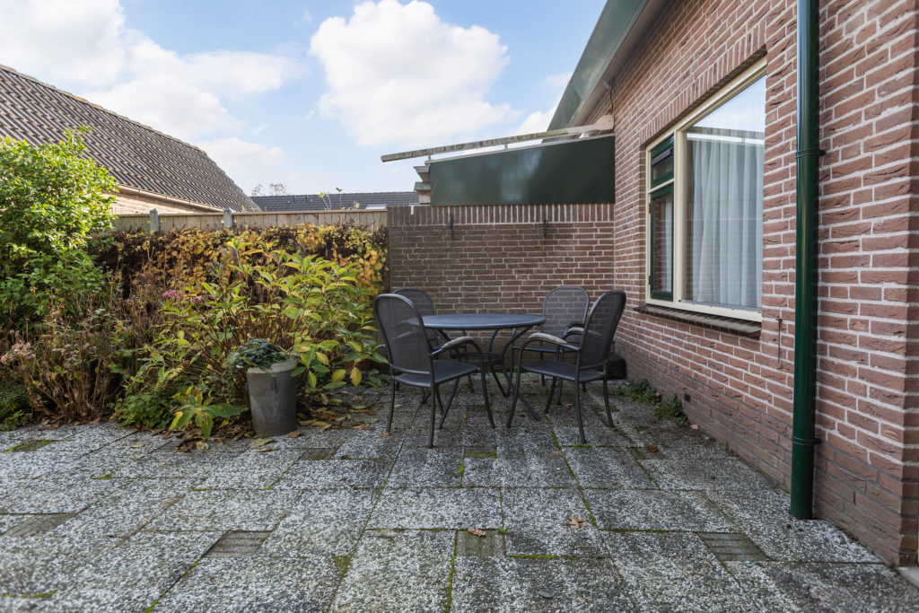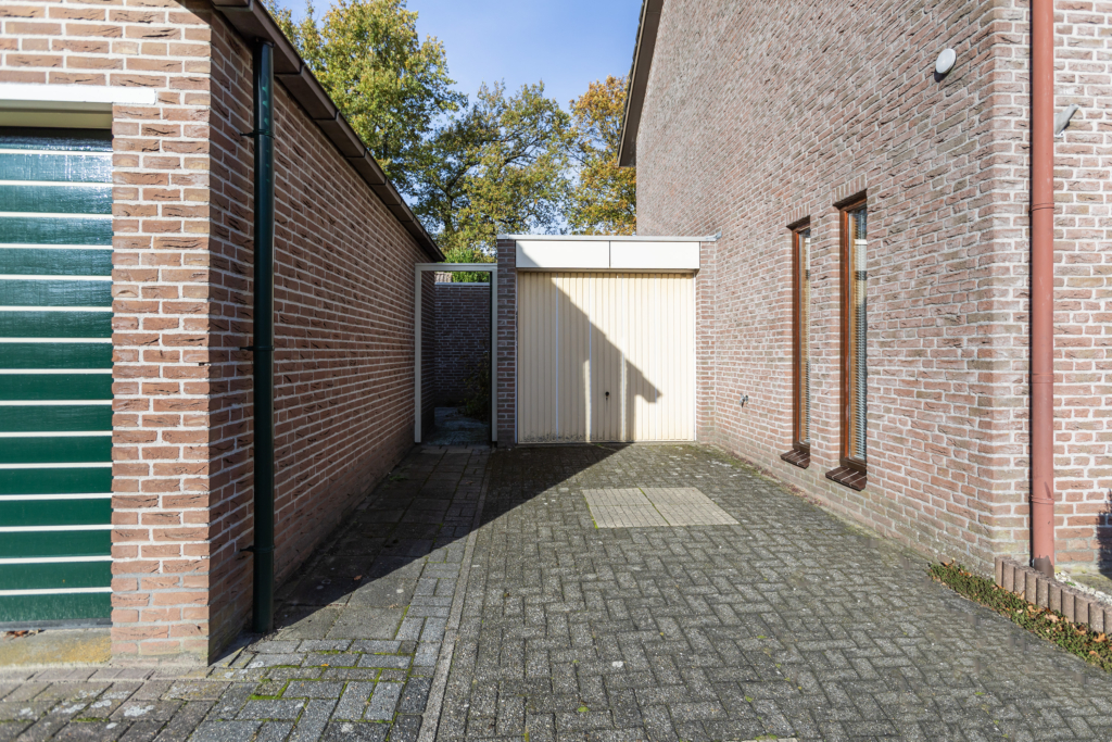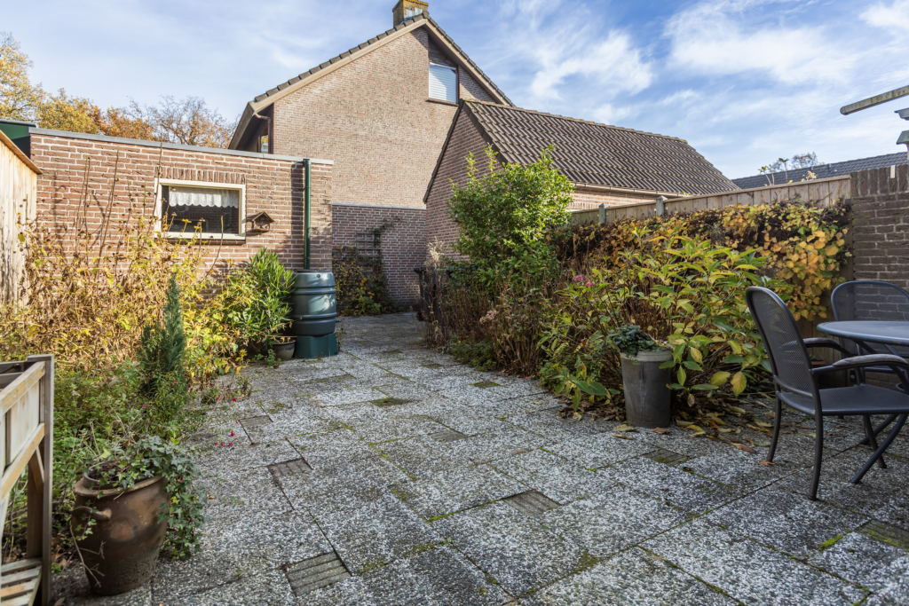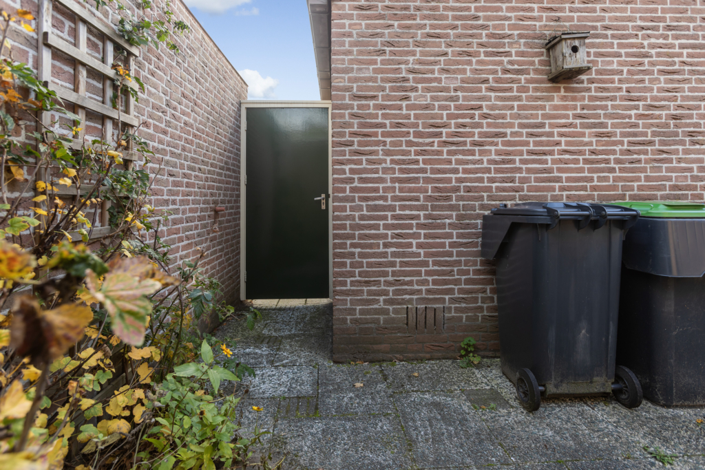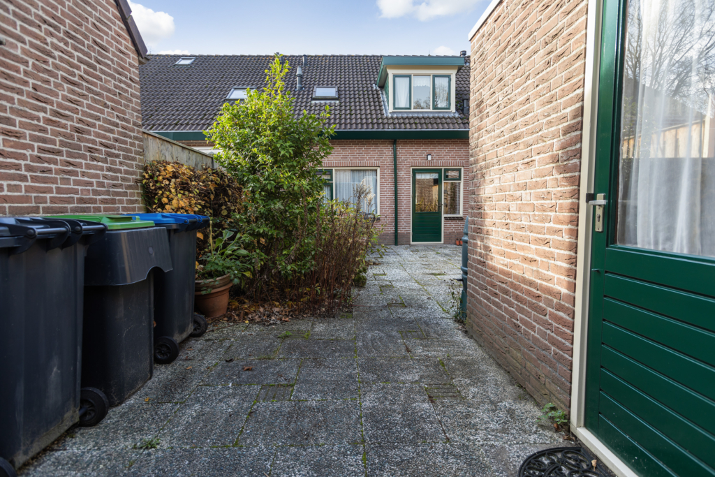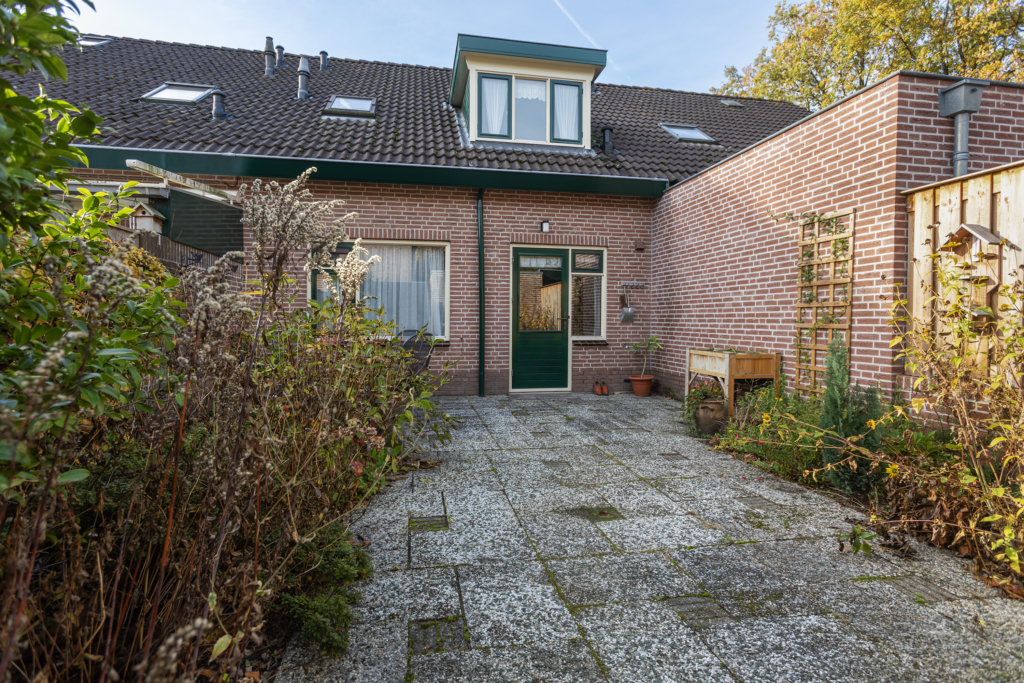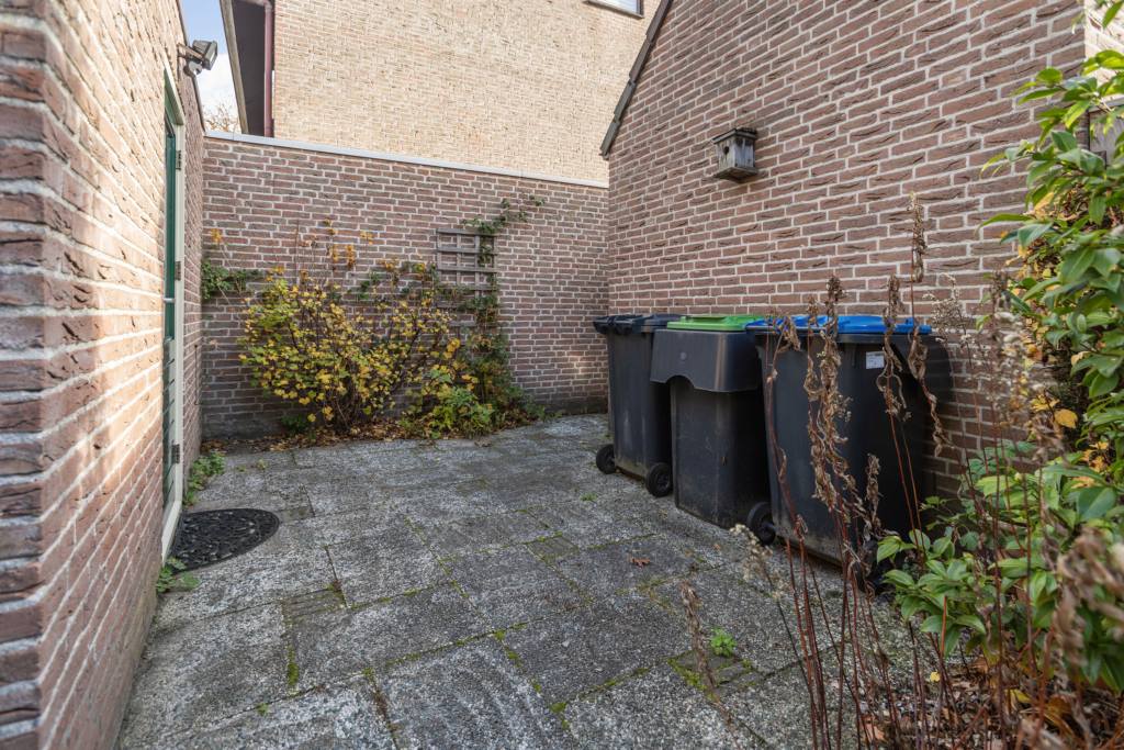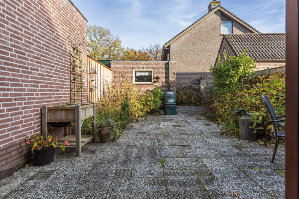 De achtertuin is van betegeling en borders voorzien en beschikt over een stenen berging (ca. 3 x 3,84 m.). Naast deze berging komt u op het achterpad welke met een poort afsluitbaar is.