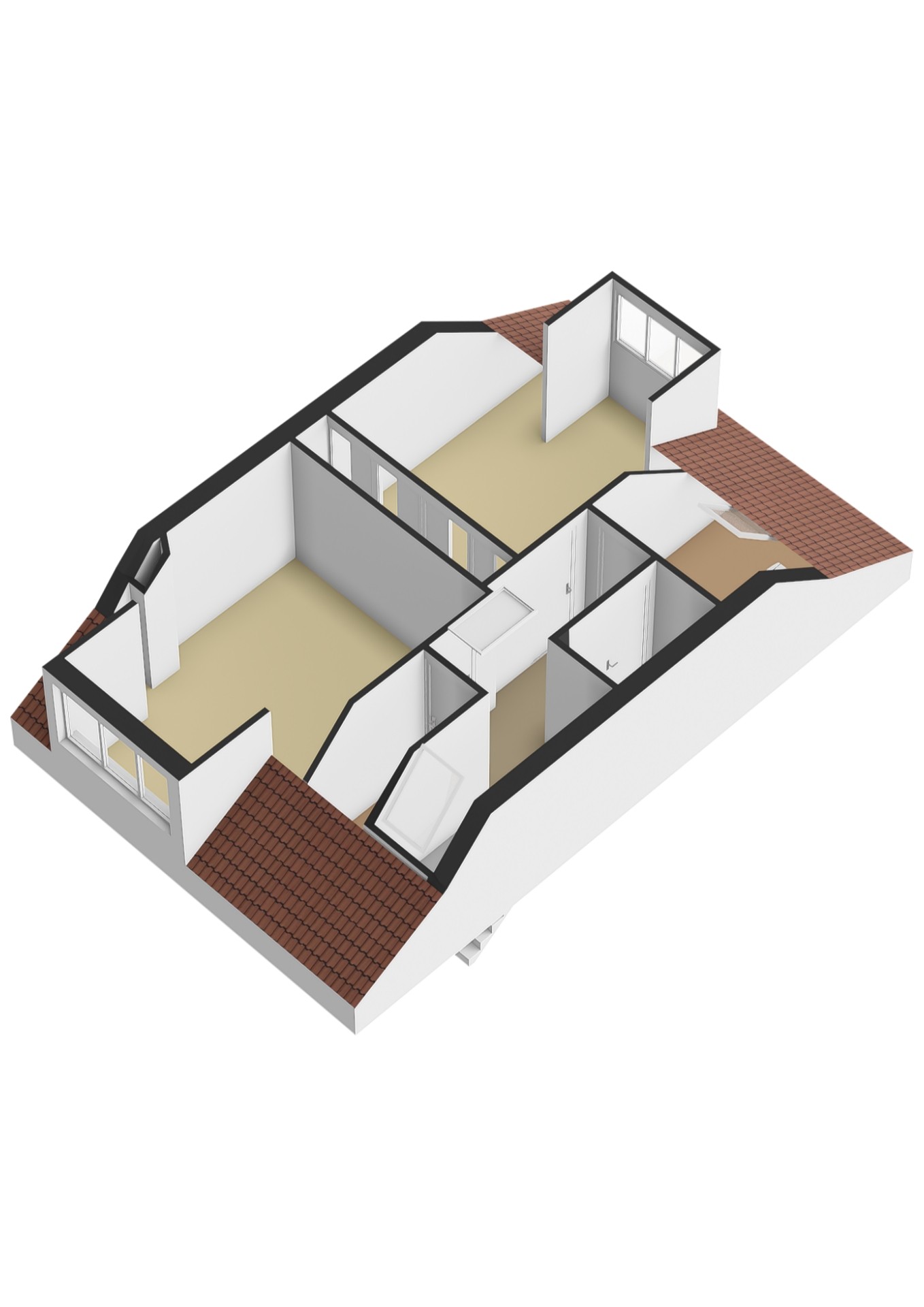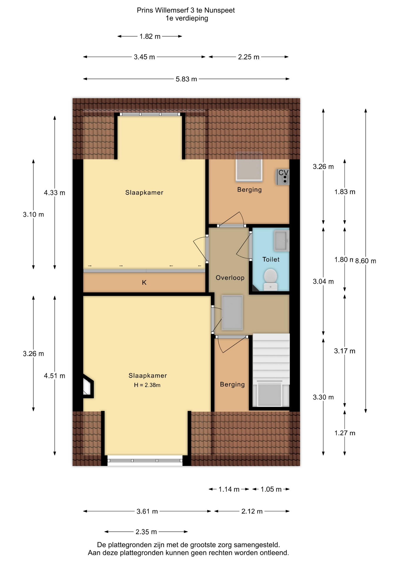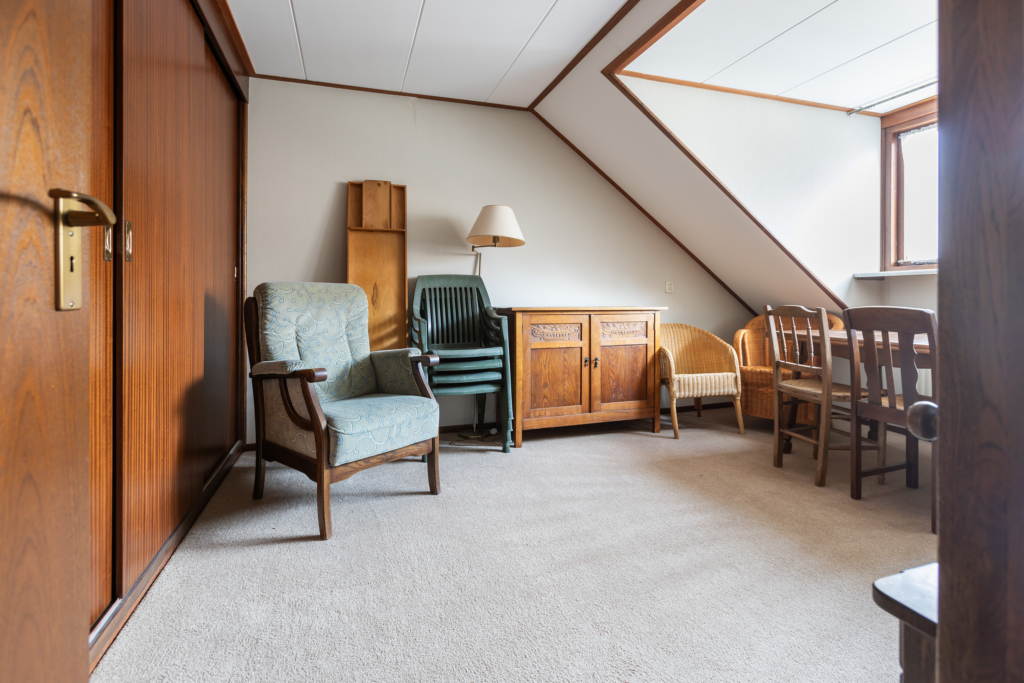 Etage: via de vaste trap komt u op de overloop. Hier treft u het tweede toilet aan en bereikt u de twee slaapkamers. Eén slaapkamer beschikt over een schuifkastenwand en beide slaapkamers zijn van een dakkapel voorzien.
