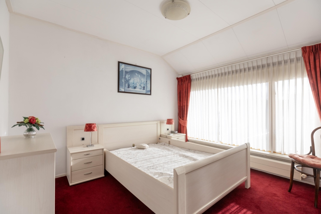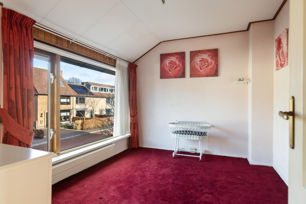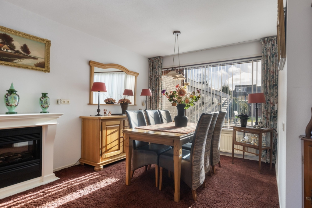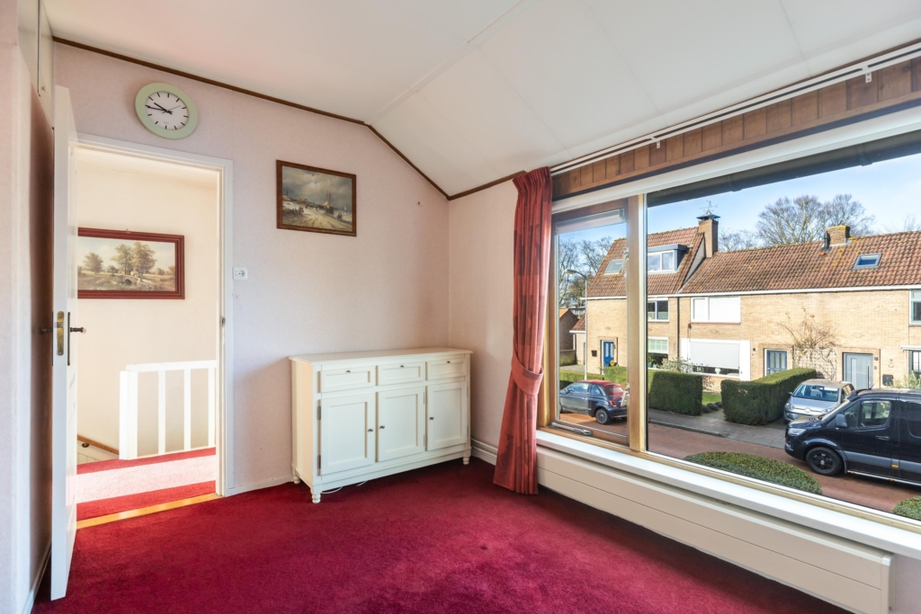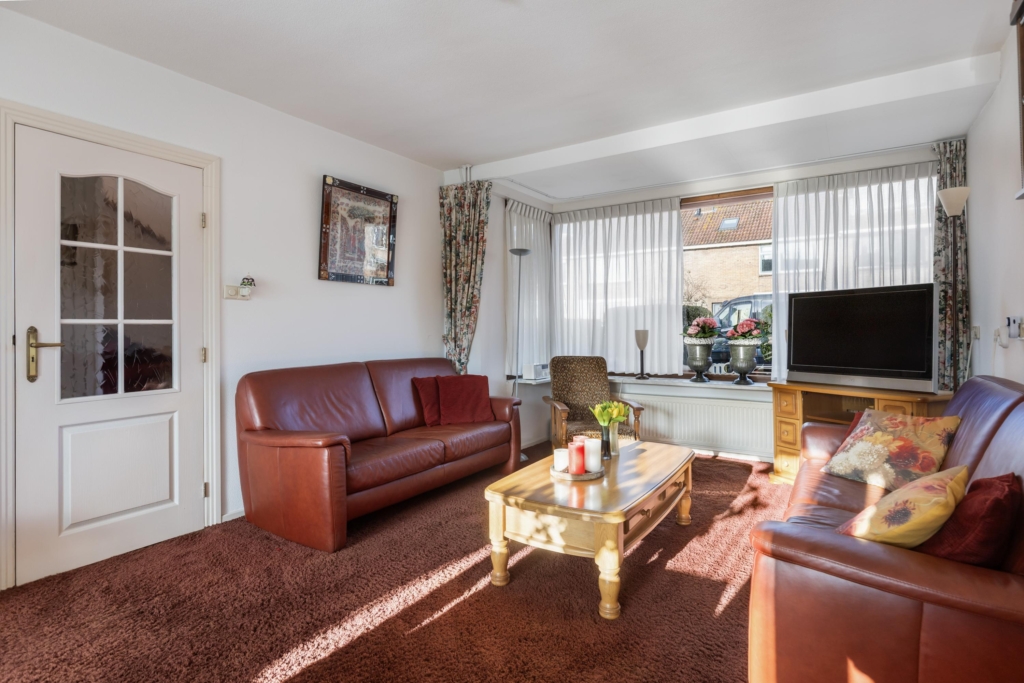 De erker aan de voorzijde van de woonkamer zorgt voor extra leefruimte en lichtinval.
