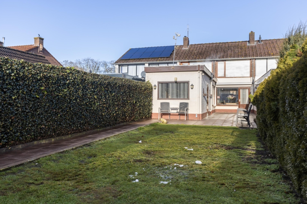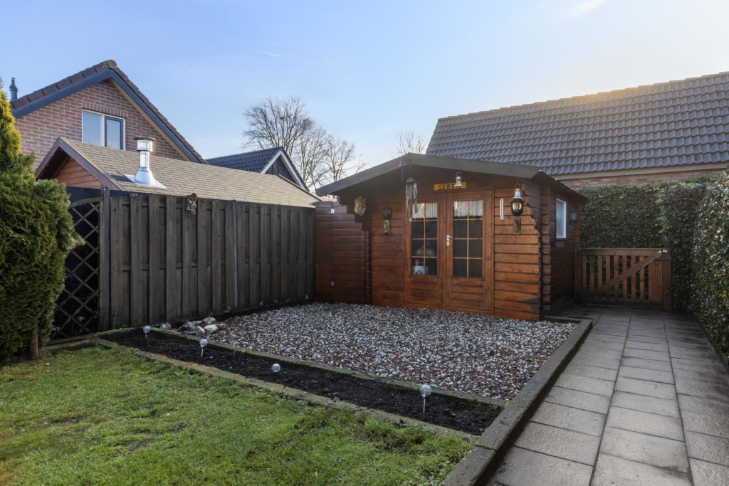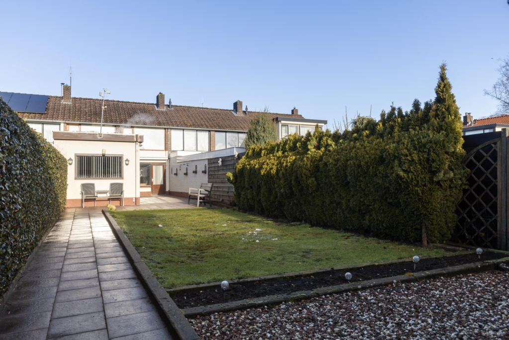 Rond 1952 is dit gezellige huis gebouwd op een perceel van maar liefst 268 m2. De achtertuin ligt heerlijk op de zon en is ruim 20 meter diep. Behalve een gazon tref je hier een houten blokhut en toegang tot het achterpad aan.